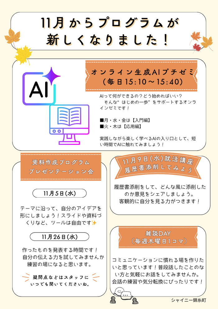 このプログラムでは、「オンライン生成AIプチゼミ」が毎日開催されています。注目すべきは、その目的が「AIの達人」を育てることではなく、あくまでも「“はじめの一歩”をサポートする」と明確にターゲットを決めている点です。