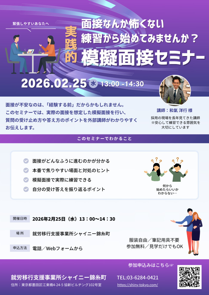 【面接なんか怖くない。練習から始めてみませんか?】模擬面接セミナー開催のお知らせ