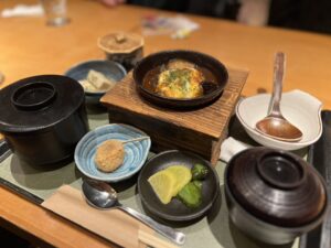 他の皆さんは釜めしを注文していましたが、私は牛タン煮込みを頼みました…(笑)